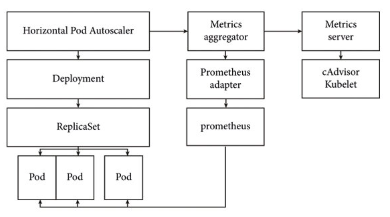 - The Horizontal pod autoscaler will query the custom metrics API and k8s will redirect it to the prometheus.
