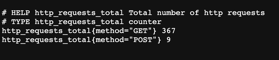 const { Counter, register } = require('prom-client'); // metrics endpoint const counter = new Counter({ name: "http_requests_total", help: "Total number of http requests", labelNames: ["method"], }); app.get("/metrics", async (req, res) => { res.set('Content-Type', register.contentType); res.end(await register.getSingleMetricAsString('http_requests_total')); }); Add the package dependencies in the package.json "prom-client": "^14.2.0", -