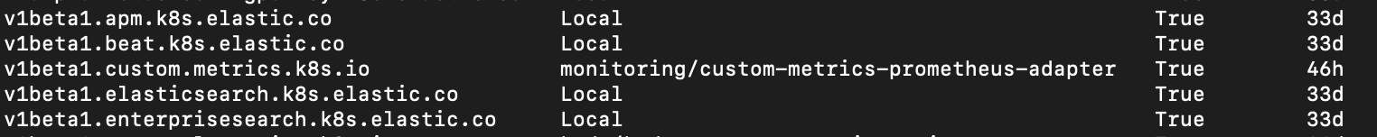 --- apiVersion: rbac.authorization.k8s.io/v1 kind: ClusterRole metadata: labels: app: prometheus-adapter name: prometheus-adapter-server-resources rules: - apiGroups: - custom.metrics.k8s.io resources: ["*"] verbs: ["*"] --- apiVersion: rbac.authorization.k8s.io/v1 kind: ClusterRoleBinding metadata: labels: app: prometheus-adapter name: prometheus-adapter-hpa-controller roleRef: apiGroup: rbac.authorization.k8s.io kind: ClusterRole name: prometheus-adapter-server-resources subjects: - kind: ServiceAccount name: custom-metrics-prometheus-adapter namespace: monitoringapiservice.yaml file ---- apiVersion: apiregistration.k8s.io/v1 kind: APIService metadata: name: v1beta1.custom.metrics.k8s.io labels: app: prometheus-adapter spec: service: name: custom-metrics-prometheus-adapter namespace: monitoring group: custom.metrics.k8s.io version: v1beta1 insecureSkipTLSVerify: true groupPriorityMinimum: 100 versionPriority: 100 -