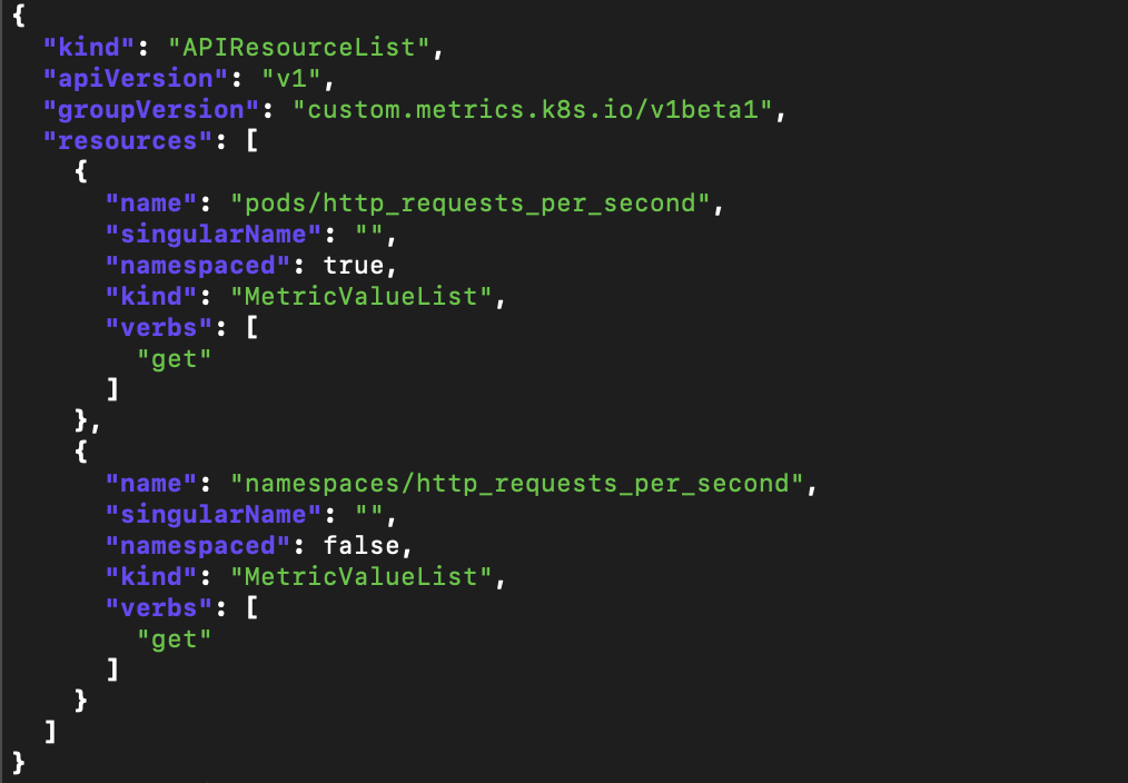 rbac.yaml file ---- apiVersion: v1 kind: ServiceAccount metadata: labels: app: prometheus-adapter name: custom-metrics-prometheus-adapter namespace: monitoring --- apiVersion: rbac.authorization.k8s.io/v1 kind: ClusterRoleBinding metadata: labels: app: prometheus-adapter name: prometheus-adapter-system-auth-delegator roleRef: apiGroup: rbac.authorization.k8s.io kind: ClusterRole name: system:auth-delegator subjects: - kind: ServiceAccount name: custom-metrics-prometheus-adapter namespace: monitoring --- apiVersion: rbac.authorization.k8s.io/v1 kind: ClusterRoleBinding metadata: labels: app: prometheus-adapter name: prometheus-adapter-resource-reader roleRef: apiGroup: rbac.authorization.k8s.io kind: ClusterRole name: prometheus-adapter-resource-reader subjects: - kind: ServiceAccount name: custom-metrics-prometheus-adapter namespace: monitoring --- apiVersion: rbac.authorization.k8s.io/v1 kind: ClusterRole metadata: labels: app: prometheus-adapter name: prometheus-adapter-resource-reader rules: - apiGroups: - "" resources: - namespaces - pods - services - configmaps verbs: - get - list - watch --- apiVersion: rbac.authorization.k8s.io/v1 kind: RoleBinding metadata: labels: app: prometheus-adapter name: prometheus-adapter-auth-reader namespace: kube-system roleRef: apiGroup: rbac.authorization.k8s.io kind: Role name: extension-apiserver-authentication-reader subjects: - kind: ServiceAccount name: custom-metrics-prometheus-adapter namespace: monitoringconfigmap.yaml ---- apiVersion: v1 kind: ConfigMap metadata: name: custom-metrics-prometheus-adapter namespace: monitoring labels: app: prometheus-adapter data: config.yaml: | rules: - seriesQuery: 'http_requests_total{namespace!="",pod!=""}' resources: overrides: namespace: resource: namespace pod: resource: pod name: matches: "^(.*)_total" as: "${1}_per_second" metricsQuery: 'sum(rate(<<.Series>>{<<.LabelMatchers>>}[2m])) by (<<.GroupBy>>)'deployment.yaml ---- apiVersion: apps/v1 kind: Deployment metadata: name: custom-metrics-prometheus-adapter namespace: monitoring spec: replicas: 1 selector: matchLabels: app: prometheus-adapter template: metadata: labels: app: prometheus-adapter name: prometheus-adapter annotations: checksum/config: 4b70a56e35e56c8038b94f63f0515e79f22bd49456902c2f3c3d2dd9b2474ece spec: serviceAccountName: custom-metrics-prometheus-adapter containers: - name: prometheus-adapter image: "directxman12/k8s-prometheus-adapter-amd64:v0.8.4" imagePullPolicy: IfNotPresent args: - /adapter - --secure-port=6443 - --cert-dir=/tmp/cert - --logtostderr=true - --prometheus-url=http://prometheus-kube-prometheus-prometheus.monitoring.svc:9090 - --metrics-relist-interval=1m - --v=4 - --config=/etc/adapter/config.yaml ports: - containerPort: 6443 name: https livenessProbe: httpGet: path: /healthz port: https scheme: HTTPS initialDelaySeconds: 30 timeoutSeconds: 5 readinessProbe: httpGet: path: /healthz port: https scheme: HTTPS initialDelaySeconds: 30 timeoutSeconds: 5 resources: limits: cpu: 100m memory: 128Mi requests: cpu: 100m memory: 128Mi securityContext: allowPrivilegeEscalation: false capabilities: drop: ["all"] readOnlyRootFilesystem: true runAsNonRoot: true runAsUser: 10001 volumeMounts: - - mountPath: /etc/adapter/ name: config readOnly: true mountPath: /tmp name: tmp volumes: - name: config configMap: name: custom-metrics-prometheus-adapter - name: tmp emptyDir: {}NOTE - In line 30 , make sure to enter the correct prometheus service name and url.